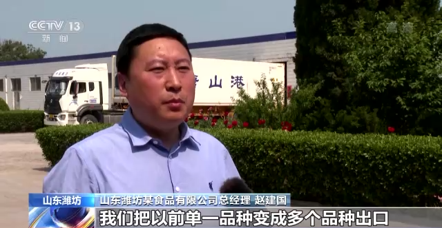 山东潍坊某食品有限公司总经理 赵建国:今年以来,我们把以前单一品种变成多个品种出口,实现品种的增加,让我们产生这个想法,主要是今年开始实施RCEP(《区域全面经济伙伴关系协定》)贸易协定,通过贸易协定,我们出口关税可以实现逐年递减。