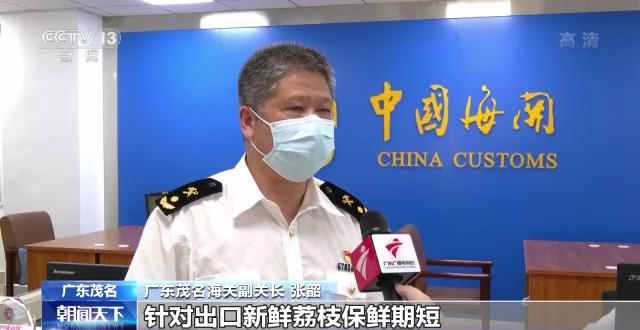 广东茂名海关副关长 张韶:针对出口新鲜荔枝保鲜期短、通关时效性强的特点,采取农产品出口绿色通道“一对一”的服务措施,4月25日以来,我们茂名鲜荔枝出口1075吨,出口金额人民币2662万(元)。