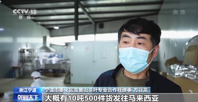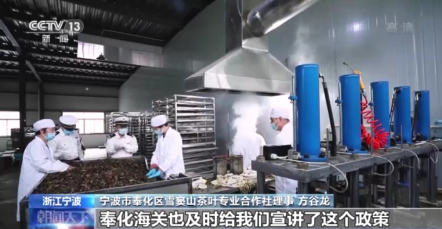宁波市奉化区雪窦山茶叶专业合作社理事 方谷龙:RCEP(《区域全面经济伙伴关系协定》)这个政策来了以后,奉化海关也及时给我们宣讲了这个政策,我们及时跟对方客户沟通可以享受的政策,所以客户觉得这个对他们比较有利的,所以他们马上增加了(采购)量,原来是跟我们协商好一个月大概一个柜,大概10吨,现在增加到2个柜。