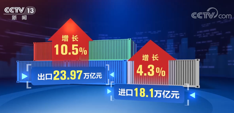 海关统计显示,2022年,我国外贸进出口总值42.07万亿元,比2021年增长7.7%。其中,出口23.97万亿元,增长10.5%;进口18.1万亿元,增长4.3%。