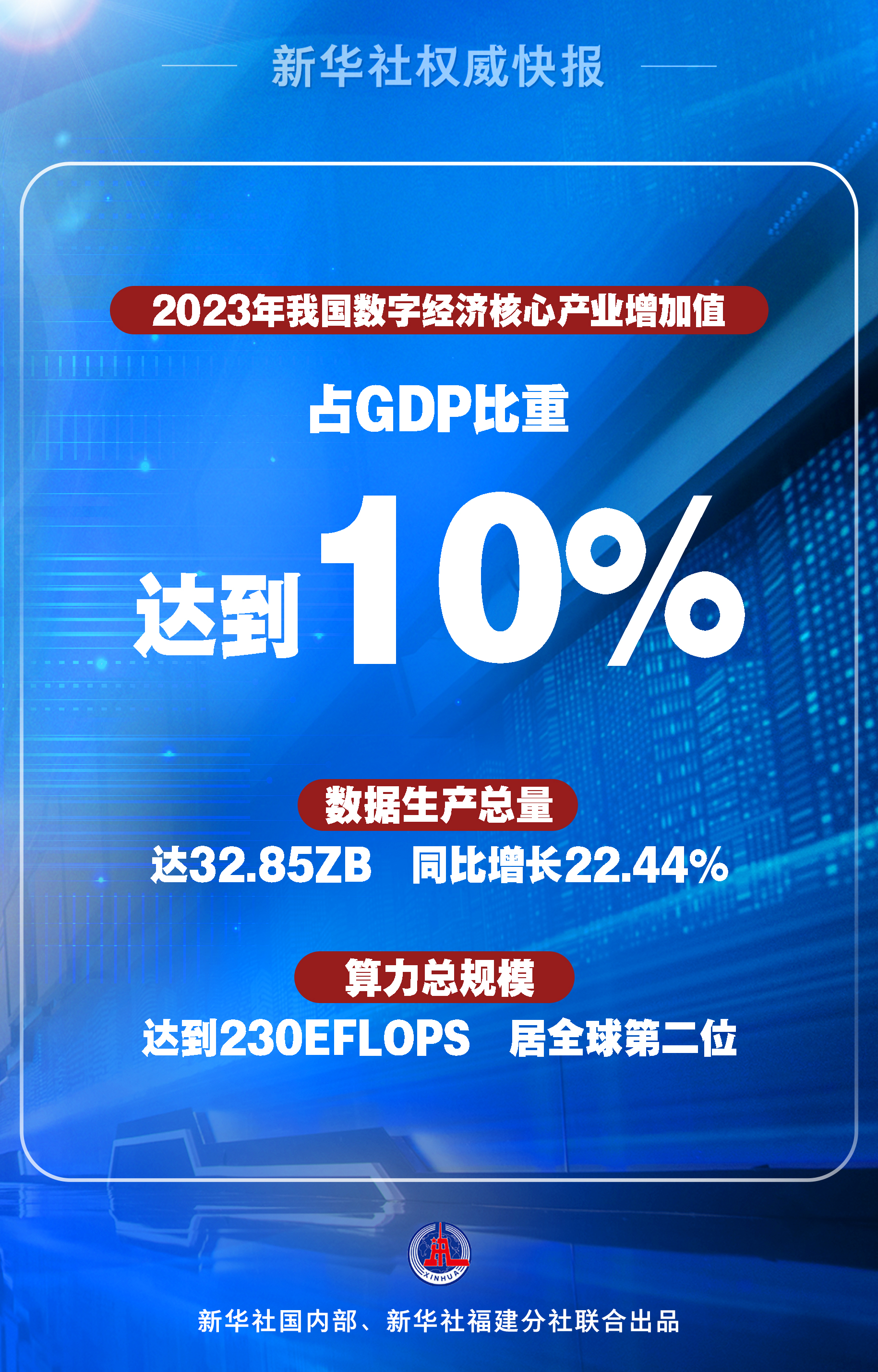24日开幕的第七届数字中国建设峰会上传来好消息:2023年,我国数字经济核心产业增加值占国内生产总值(GDP)比重达到10%。亿万民众畅享“数智红利”。